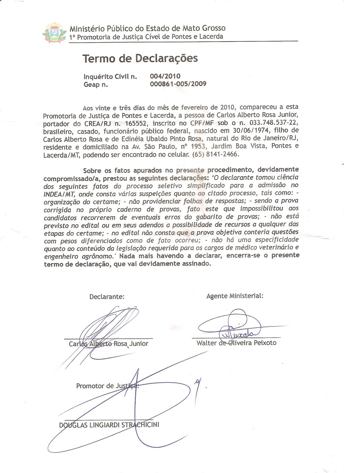 Encaminhei este documento, pedindo a anulação do Processo Seletivo Simplificado ao Presidente do INDEA que simplesmente ignorou o pedido, e nem se dignou a responder, isso há 3 meses.